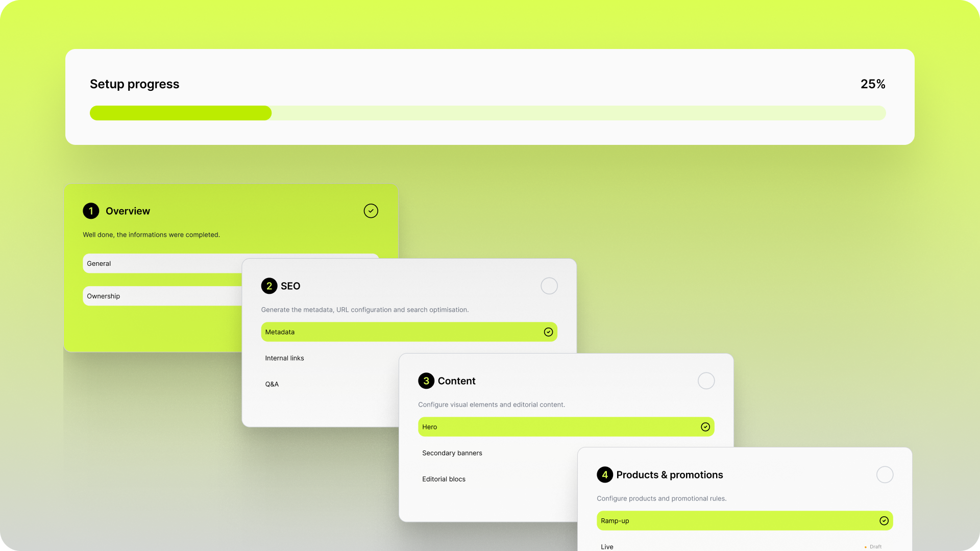To support this, we organised campaign inputs by topic, grouping related information such as content, SEO, and operational settings into clear sections.