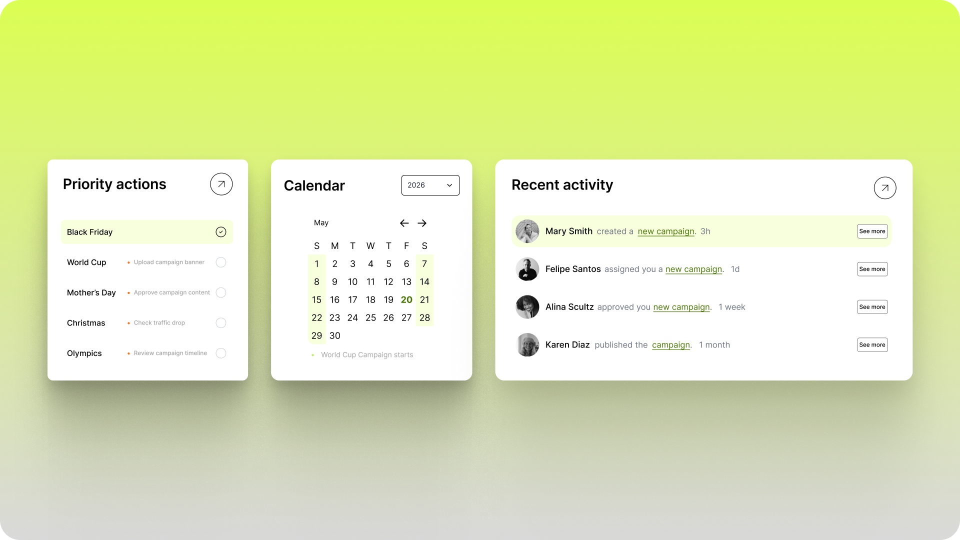 The feature provides a clear overview of campaign status, inputs, and actions, helping teams manage campaigns more efficiently and with greater autonomy.